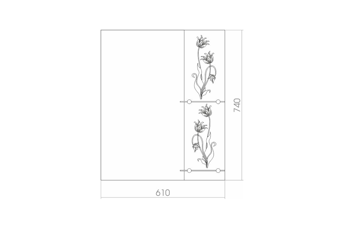 Технические характеристики MIXLINE Роса 610х740 2 полки, фацет, пескоструйный рисунок