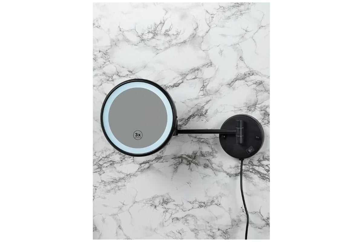 Зеркало Nofer VANITY с регулировкой и led-подсветкой, увеличение х3, Ø160 мм, черное 08006.N