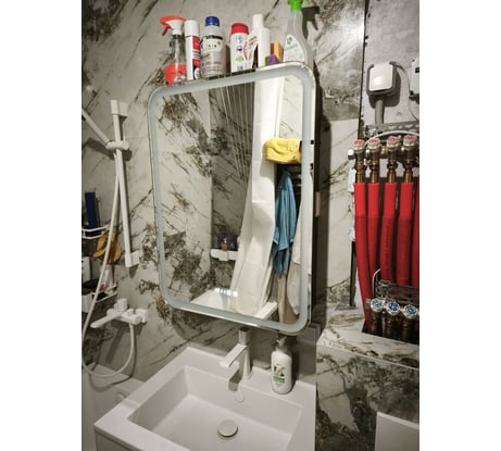 - Зеркало-шкаф, оснащенное светодиодной LED подсветкой с диммером, часами и функцией антизапотевания