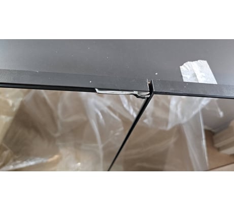 Шкаф приехал с разбитым в углу зеркалом. Вроде и коробка хорошая и зеркало было дополнительно защищено. Но по центру, где створки сходятся, ничего не положено. И это оказалось слабым местом. Упаковка была целая. И пока не снял внутренний мешок, не увидел. Попадеялся, что будет целым, не стал проверять при доставке. Печально.
