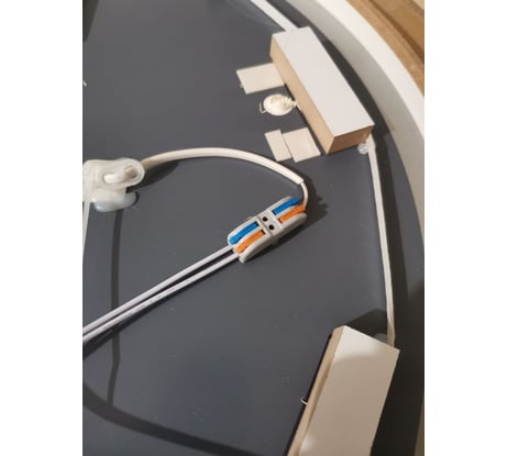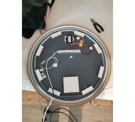 Зеркало имеет хорошее покрытие, но из-за личных предпочтений пришлось дорабатывать, в исходном виде идет подсветка очень холодного цвета и очень ярко горит кнопка включения таким же холодным цветом. Для доработки была куплена на ВИ светодиодная лента 3000К за 345 рублей, зеркало разбирается легко, новую ленту наклеил вторым рядом, старую оставил, но отключил. Для доработки кнопки использовал красную изоленту, так получилось гораздо комфортнее для глаз. Сенсорная кнопка, приходится дотрагиваться до зеркала, но отпечатков не остается или они не видны. Сама подсветка чисто декоративная, именно как освещение использовать не получится, света очень мало.