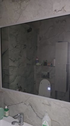 После подвеса необходимо что-то проложить под нижнюю часть зеркала, так как сильно шатается при нажиме на кнопку включения света. Вышел из ситуации просто подложив кусок пенопласта с двухсторонним скотчем.