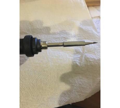 Купил как дополнительное жало для паяльника МЕГЕОН 00180. Попробовать не получилось, тк отверстие меньшей глубины, чем необходимо. Жало не одевается полностью на нагреватель и гайкой невозможно зафиксировать его-не хватает резьбы. Для сравнения я сделал фото нормального родного жала. Видно, что жало садится полностью до упора.