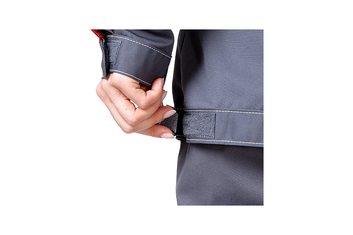 Оснащена застежкой на молнию и липкую ленту велькро. Ширина куртки регулируется по низу.