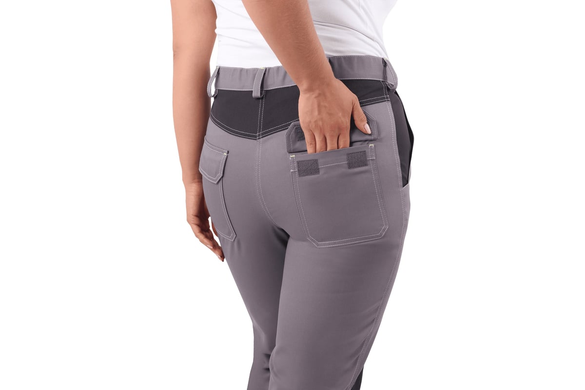 Женские брюки iForm ЭДВАНС серый-т.серый-черный Брю 618/ 80/158 устойчивы к воздействию масел, щелочей и кислот.