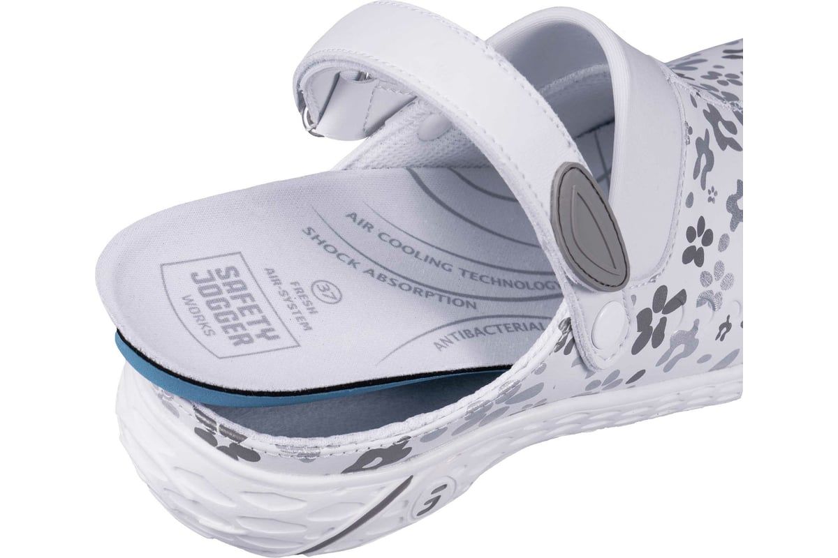 Женские полуботинки SAFETY JOGGER DANY (ДЕНИ), искусственная кожа, белые с серым принтом/MUG Кро 4348/38 являются классической обувью для любого госпиталя. Невероятная легкость совместно с антискольжением будет идеальным выбором с медицинской точки зрения для врачей, медсестер, сиделок и других профессиональных работников сферы здравоохранения.