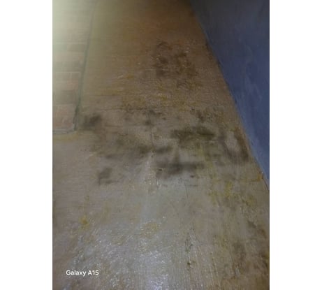 почему-то тёмные пятна кое-где (см фото). Тёмные пятна пористые. Желтизна на фото от бетонконтакта, которым позже покрыл, для последующей укладки плитки
