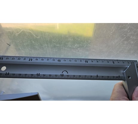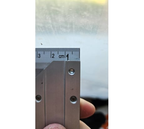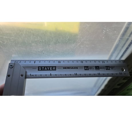 Угольник за эту цену в целом нормальный, угол, вроде, есть, однако шкала нанесена с помарками, я увидел три неточности при нанесении миллиметровой разметки, эти деления шире остальных почти в два раза, в результе угольник врет по внутренней стоне на два миллиметри минимум, по наружной на полтора миллиметра. На фото видно, что между 20.5 и 20.6, 15.9 и 16.0, 12.5 и 12.6 расстояние больше одного миллиметра. Проверяйти при получении не только градус, но и разметку с лупой. Оформил заявку на возврат.