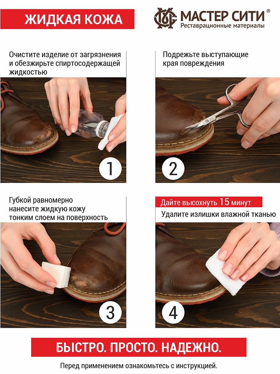 Жидкая кожа для обуви, ремонта изделий из кожи от производителя Мастер Сити. С помощью средства для ремонта кожи вы сможете в домашних условиях отремонтировать повреждения на изделиях из гладкой натуральной, искусственной кожи и экокожи (кожзама). Применяйте восстановитель кожи для ремонта порезов, царапин, потертостей на мебели, обуви, сумках, для кожаного салона авто и аксессуаров. Густой кремообразный состав кожи на основе силикона и натуральных восков заполняет, склеивает поврежденный слой кожи в цвет изделия и выравнивает поверхность. Восстановитель кожи не растягивается, не выцветает, устойчив к перепадам температур, водостойкий. Сочетается с краской для кожи. Можно использовать вместо краски для обуви. Жидкая кожа для мебели представлена в 40 цветах, можно смешивать между собой для получения нужного оттенка. Место ремонта не впитывает воду, покрытие не отслаивается. Обратите внимание, что экран может искажать цвет продукта. Проверяйте цвет на экранах 2х устройств.