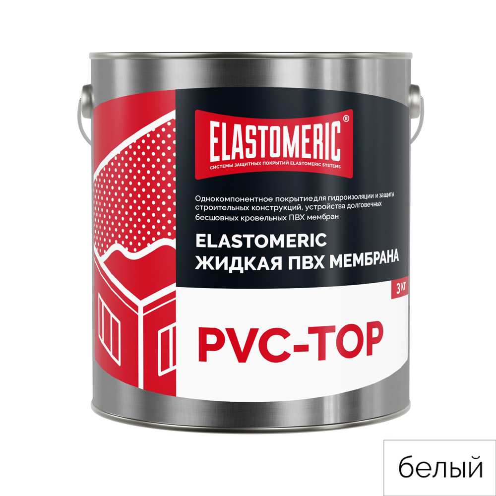 Жидкая ПВХ мембрана ELASTOMERIC PVС-TOP – верхний слой наносимого в жидком виде однокомпонентного покрытия на основе модифицированного ПВХ, термоэластопластов и нефтеполимерных смол для гидроизоляции и защиты строительных конструкций и устройства долговечных бесшовных кровельных ПВХ мембран.
