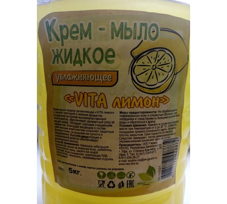 Жидкое крем-мыло Neoline «VITA лимон», 5 кг 143021