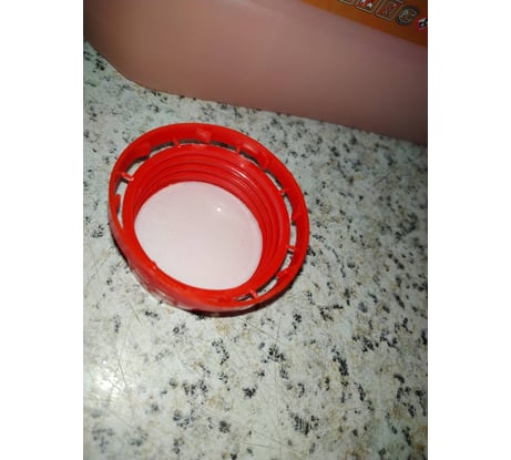 - Свиду тут нет 5 литров, это даже видно на канистре со средством. Может где то пролилось, не знаю... И угол канистры был чуть помят, Но не страшно. - А так же, крышку открутил вместе с пломбой пластиковой, которая должна была по идее остаться на горлышке снизу. Фото приложу.