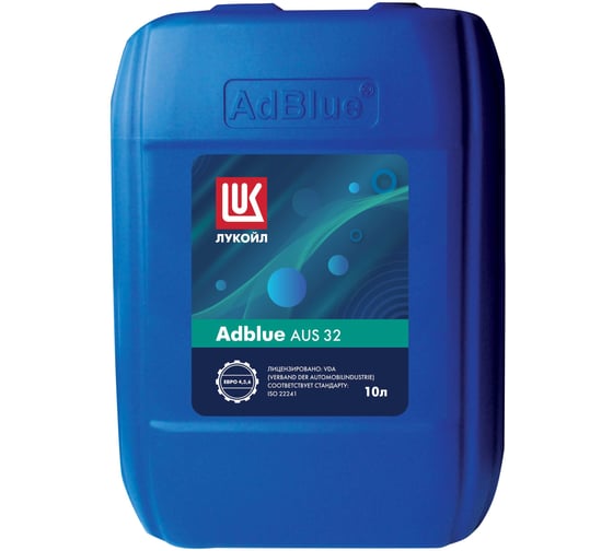 Жидкость для системы SCR дизельных двигателей Лукойл AdBlue, 10 л 1390003 – средство для систем селективной каталитической нейтрализации оксидов азота (SCR), устанавливаемых в дизельных автомобилях с целью достижения экологических нормативов Евро 4 и Евро 5. AUS 32 «АdBlue» представляет собой раствор мочевины высшей степени очистки (32.5%) в деминерализованной воде (67.5%).