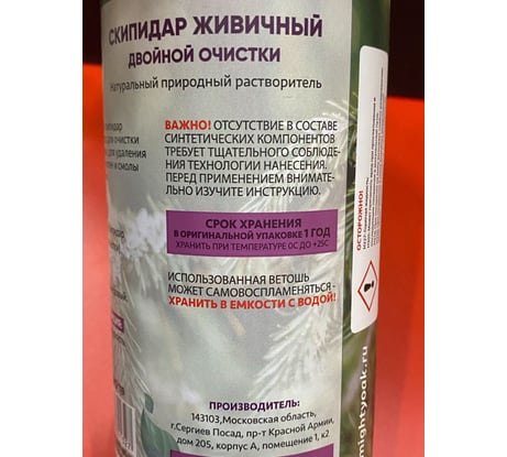 Скипидар понравился. И запах и цвет, свойства отличные.