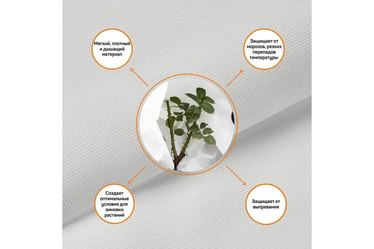 Мягкий, плотный и дышащий материал обеспечивает оптимальные условия для зимовки декоративных растений, защищает их от морозов и выпревания.