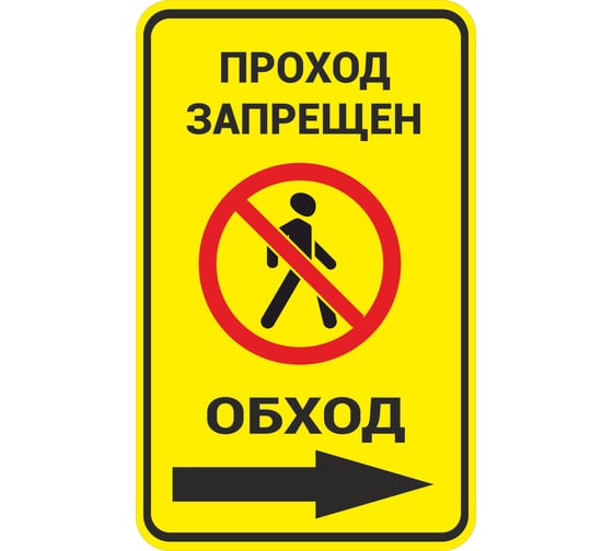 Знак ООО ПК МАГИСТРАЛЬ Проход запрещен. Обход вправо 450х600 мм основа металл пленка тип IА 4687207367868