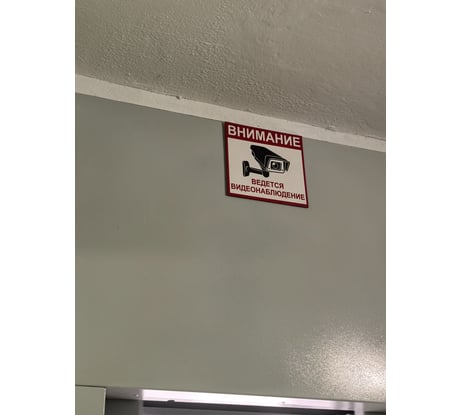В отличии от других знаков, этот выглядит вполне прилично. Без восклицательного знака после слова "Внимание", что прекрасно. Изготовлен из плотного картона с печатным слоем заведенным на тыльную сторону. Будьте внимательны, на тыльной стороне нет клеющегося слоя, на дешёвом двустороннем скотче продержался сутки и упал. Прилепил к нему магнитики с помощью обычного скотча и теперь держится без проблем. Замечательный знак, обязательно куплю ещё один такой для другого объекта.