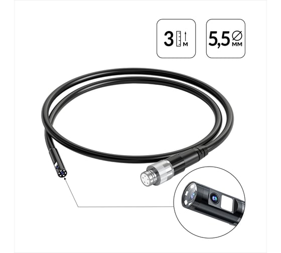 Зонд iCartool IC-VP116-3-5,5-2 с двумя камерами, диаметром 5,5 мм и длиной 3 метра предназначен для видеоэндоскопов модели IC-V116 c разъемом 5 pin.