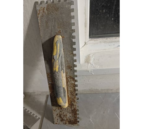 Купил для работы с плиткой не ожидал такого результата . Через 2 недели появилась ржавчина,крепление ручки с основанием не очень дребезжит когда работаешь с торцевой стороной.