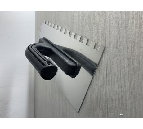 Зубцы гладилки 10х10 дают идеальную толщину слоя. Нержавейка легко чистится даже после застывшего раствора. Инструмент на столько легкий, поэтому рука не устает даже после долгой работы. Ручка удобная и не скользит.