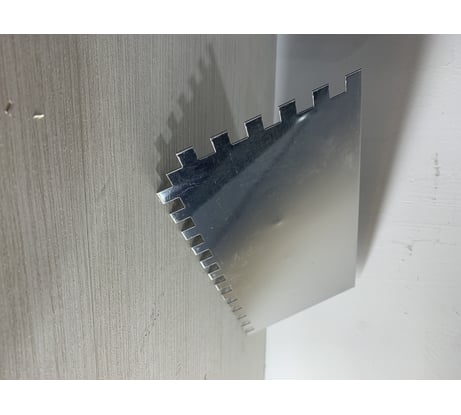 Добротная гладилка, держать и работать удобно, само полотно ровное, без дефектов, после себя оставляет идеальную поверхность. Косяков по зубьям и металлу нет, за время работы не прогнулась, ржавчиной не покрылась.