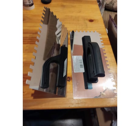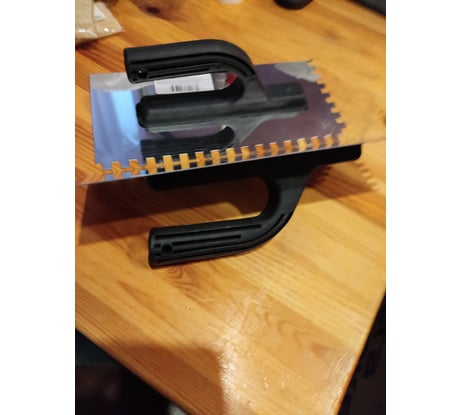Как и на большинстве подобного инструмента края не обработаны - рвёт и царапает. На ручке глубокие канавки (видимо для того, чтобы рука не потела), но по факту то всегда работает в перчатках и толку от них нет. Зато их очень неудобно вычищать от забившейся туда смеси. А если не вычищать, то на следующий раз оттуда вываливаются достаточно крупные "кирпичи" прямо в свежий раствор и впоследствии мешать прижать плитку.
