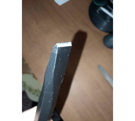 Очень маленькая твёрдость острия , закалки практически нет. Мог бы прислать видео одним кадром как остриё пилится напильником без напряжения, но пилить, держать зубило и снимать видео имея всего две руки проблематично(сейчас нет тисков под рукой), потому только фото. Слева фото спиленного, справа целого, по середине дешмановский китайский напильник. И ссылка на параметры которые должны быть у зубила https://files.stroyinf.ru/Data2/1/4294822/4294822608.htm Если надо рубить металл, то не советую к покупке, если конечно сами не сможете(не захотите) подкалить остриё зубила