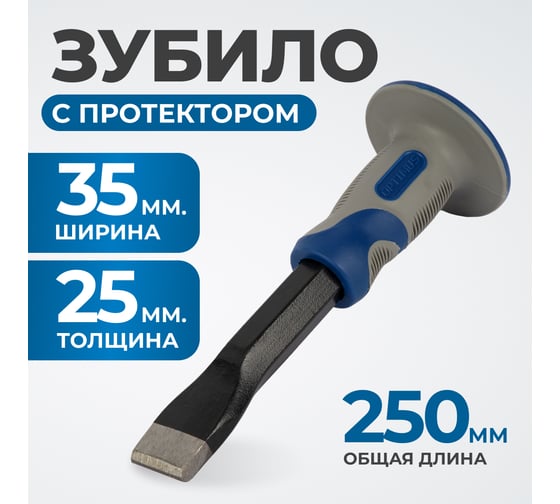 Плоское зубило 35x25х250 мм с протектором OPT-HM25025, оснащено специальным протектором на рукоятке инструмента, который защищает пальцы и ладонь от попадания молотком. Высокоуглеродистая сталь 45# с жесткостью 45HRC повышает ресурс работы. Двухкомпонентная рукоять препятствует соскальзыванию во время работы