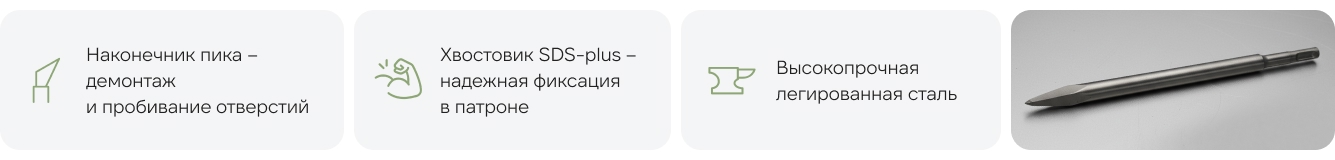 Зубило SDS-plus 250 мм для перфораторов пикообразное ИНСТУЛС 00001845873