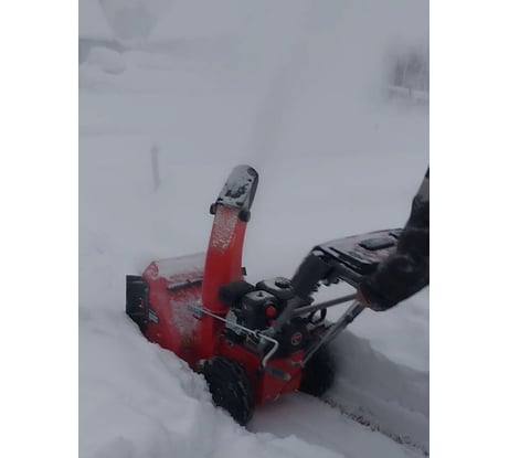 Это мой 3 снегоуборщик. Есть чем сравнивать.Режет снег как масло, идет без усилий.Он сам едет (самоходный), толкать не надо. Колеса цепкие, не буксуют даже на рыхлом снегу.Можно отрегулировать высоту ковша , если снег мокрый и налипает — специальная лопатка на ковше помогает очистить крыльчатку ото льда. Парковку 20 квадратов вычистили быстро.