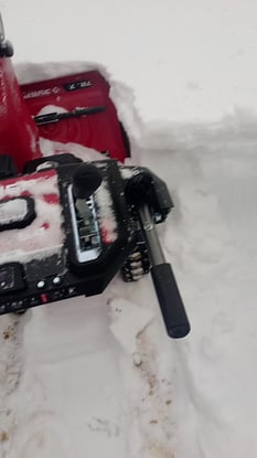 Мощности хватает даже на не полном газе, слежавшийся снег берёт даже выше заборника , но закапывается , бросает далеко, думал что 85 кг будет тяжело, но при моих 65 кг управлять комфортно