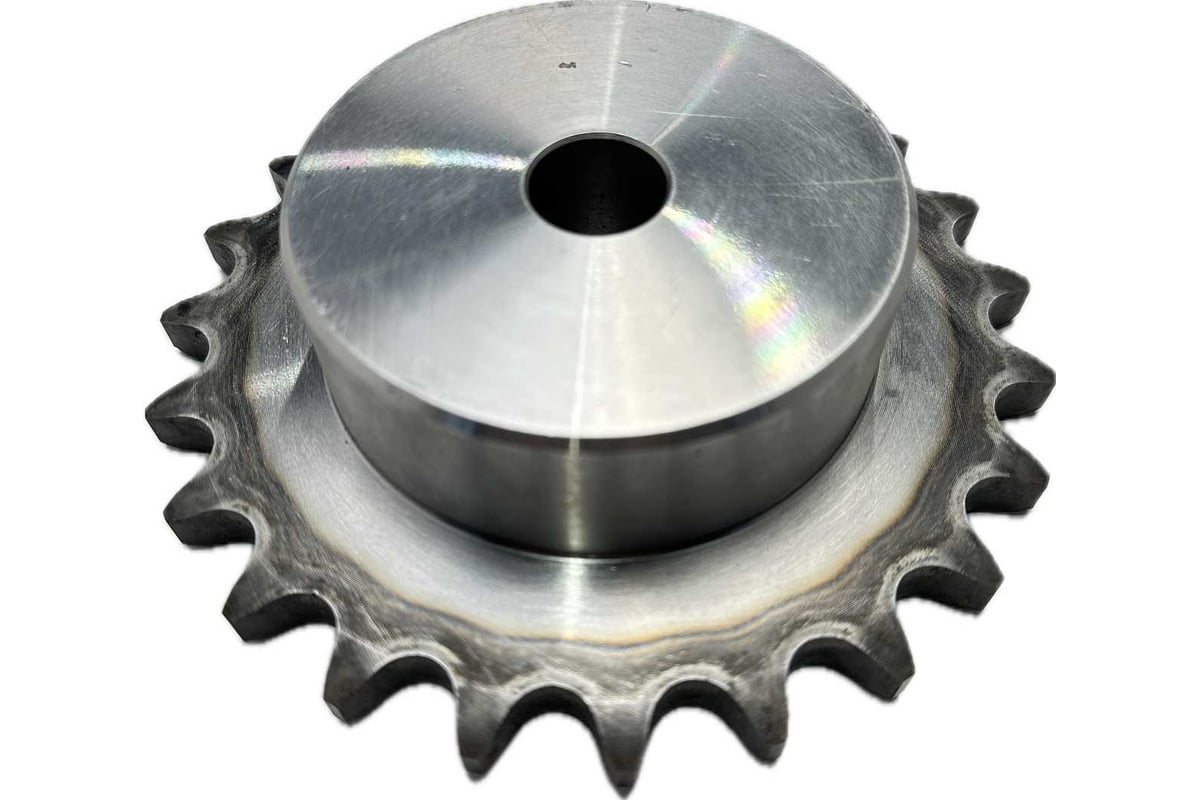 Звёздочка со ступицей с закалкой под расточку для однорядной цепи 16B-1 - это элемент трансмиссии, который используется в различных механизмах и машинах. Она представляет собой диск с зубьями, которые входят в зацепление с роликовой цепью. Ступица позволяет расточить отверстие под нужный диаметр, обеспечивая точное и надёжное соединение.