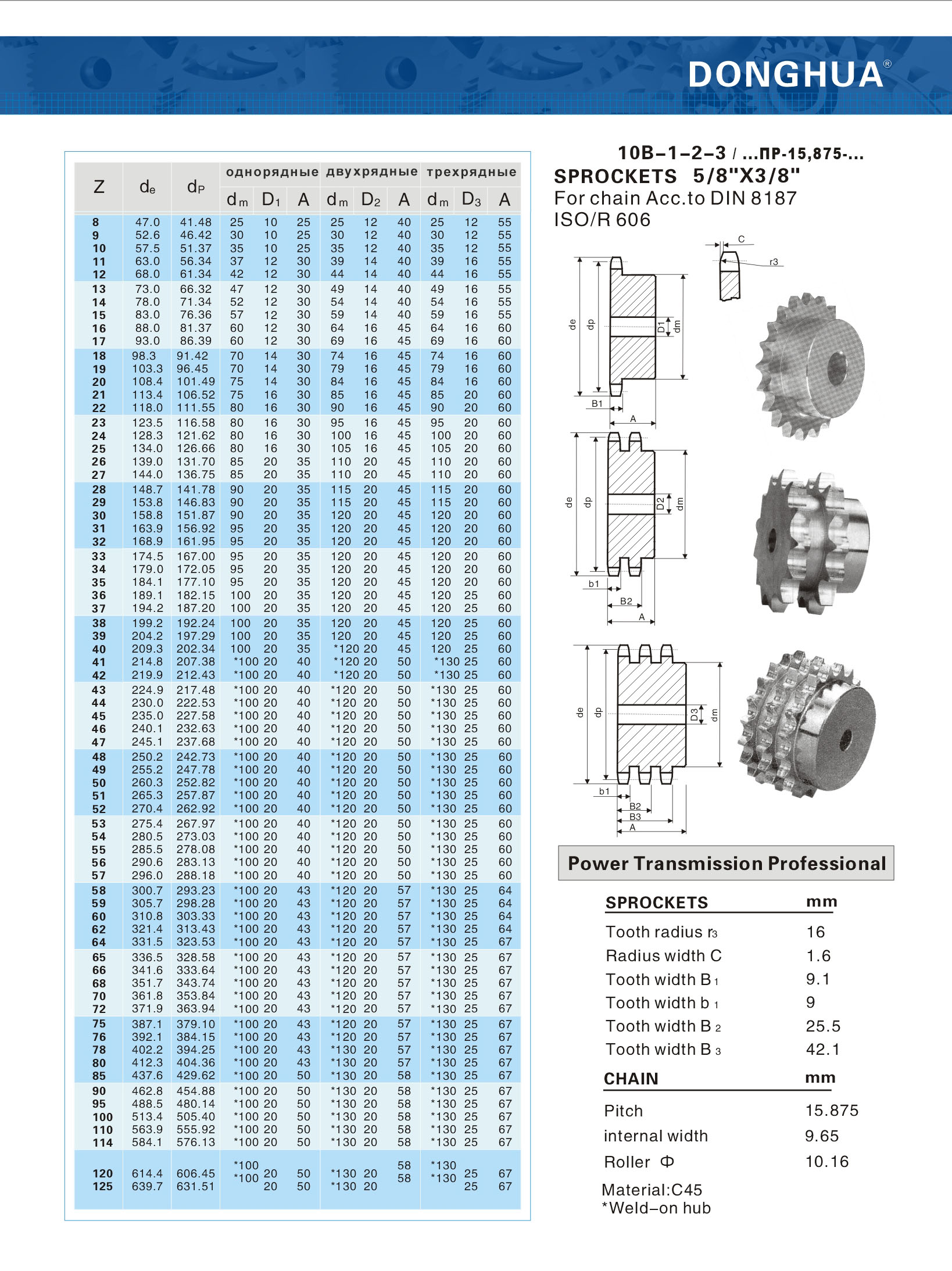 Шаг цепи:15.875
