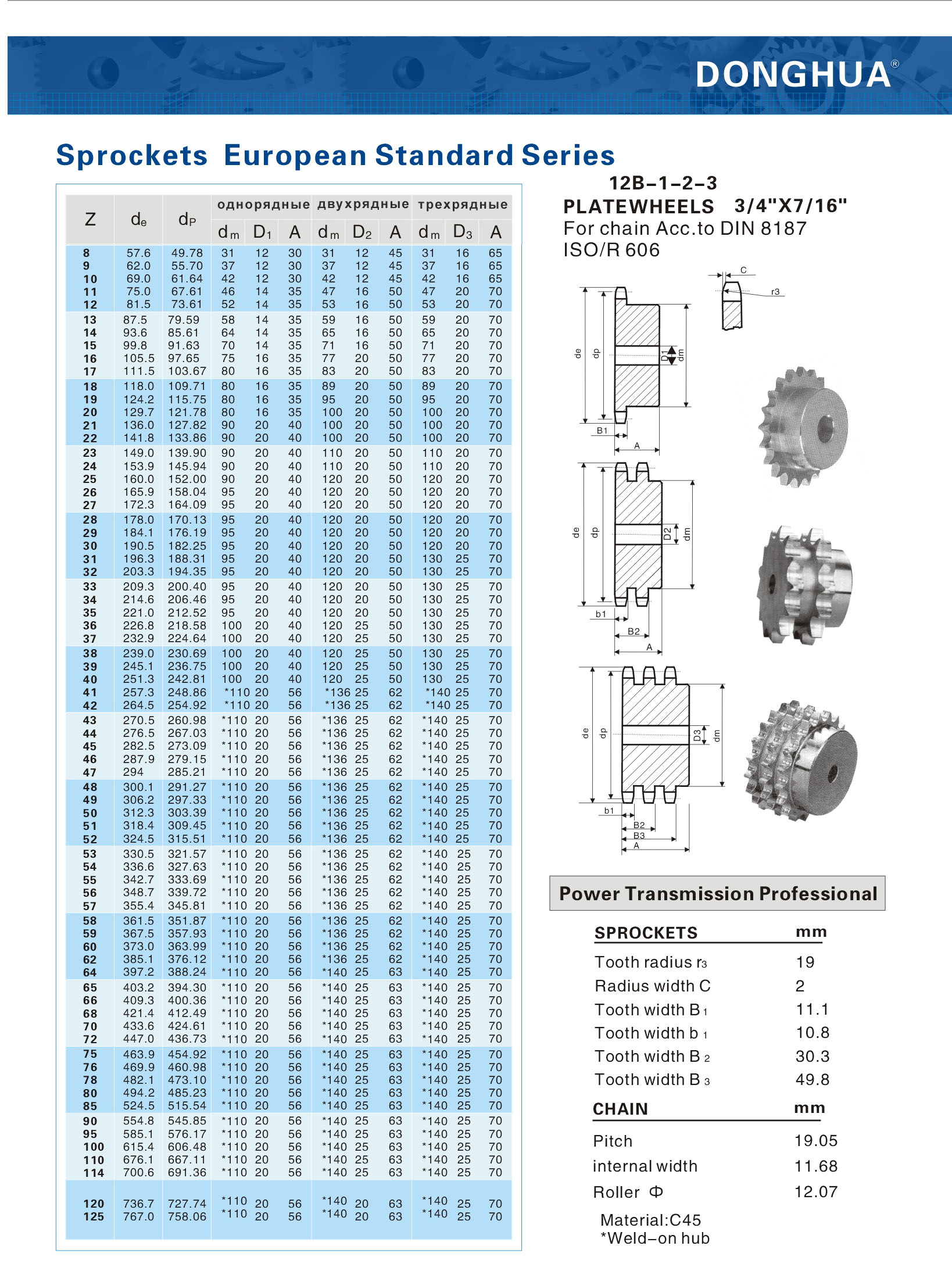 Звездочка со ступицей под расточку DONGHUA 12B-2 Z-20 с калеными зубьями для цепи с шагом 19,05мм (2ПР-19,05-64 / 12В-2 / 12А-2) 12B-2BH20 10032