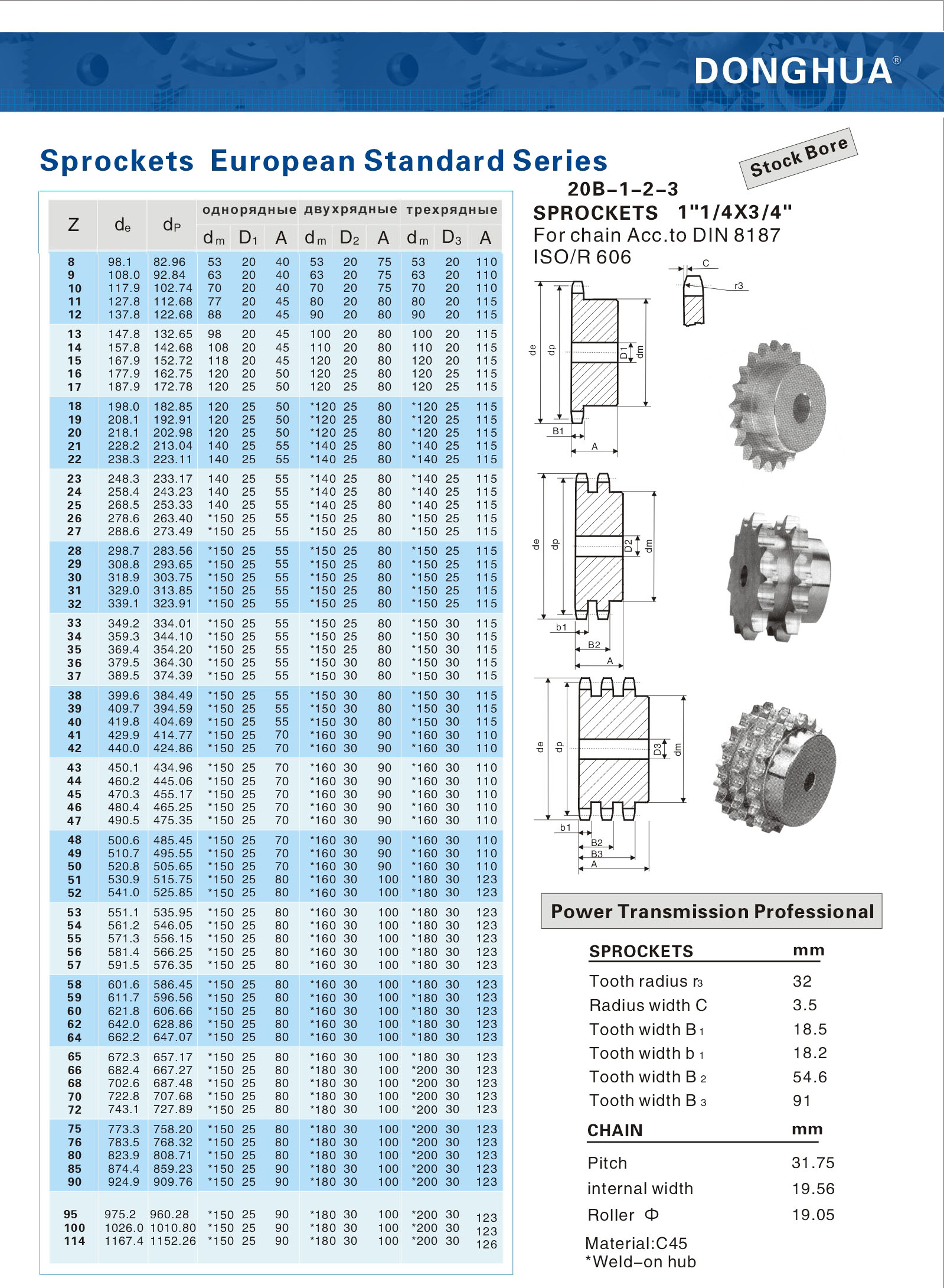 Звездочка со ступицей под расточку DONGHUA с калеными зубьями для цепи с шагом 31,75мм (20В-1) 20B-1 Z-17/20B-1BH17 10536