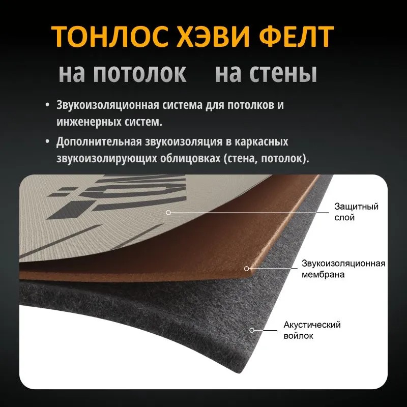Звукоизоляция потолков TONLOS Heavy Felt 4640107332978