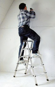 Конечно, у каждого рост индивидуален, и возможно, Вам не захочется стоять на самой последней ступеньке, да еще и тянуться изо всех сил. Поэтому рассчитайте, на какой высоте Вам нужно будет работать. Для бытовых нужд обычно подходят стремянки 2,6 – 3 м, для профессиональных – до 6 м.
