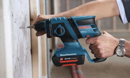 Аккумуляторные перфораторы выпускаются с 1984 года, но по популярности они пока отстают от сетевых моделей. Это объясняется в первую очередь их высокой стоимостью. Вторая причина заключается в том, что даже литий-ионная технология пока не позволяет инструменту работать дольше 10 – 20 минут от одного заряда батареи. Именно поэтому так важно наличие запасного аккумулятора. Тем не менее количество таких инструментов увеличивается, и появляются бытовые модели, например, Bosch Uneo. В местах, где отсутствует электричество, преимущество аккумуляторных перфораторов бесспорно. В основном их покупают профессионалы для строительных и монтажных работ. По своим функциональным возможностям они соответствуют сетевым моделям легкого класса. Для закрепления оснастки используются держатели SDS-рlus.