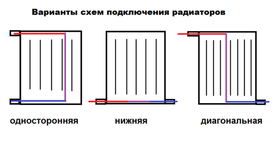 Патрубки находятся на одной стороне радиатора. Подающая труба подключается сверху, а обратка – снизу.