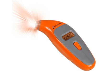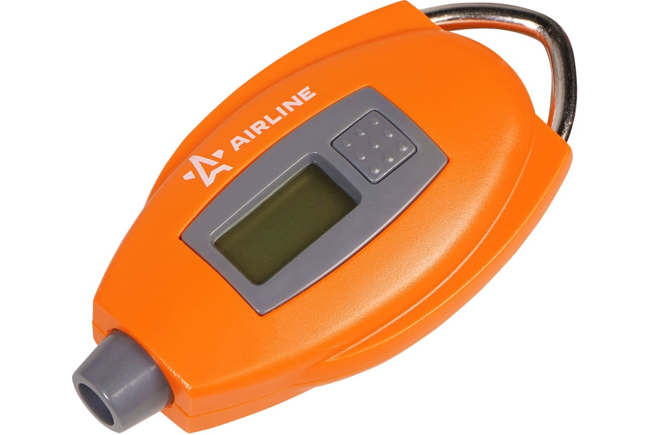Цифровой манометр Airline универсален в использовании: подойдет для измерения давления в шинах велосипедов, легковых автомобилей и небольших грузовиков. Имеет легкий и прочный корпус из алюминия. Резиновые накладки предотвращают выскальзывание прибора из руки. Можно выбрать единицу измерения – атм, psi, кПа, кг/кв.см. Данные отображаются на экране крупно и четко. Благодаря подсветке измерять давление удобно в темное время суток. Питание отключается автоматически, если устройство не используется в течение определенного времени. Это продлевает срок службы элементов питания.