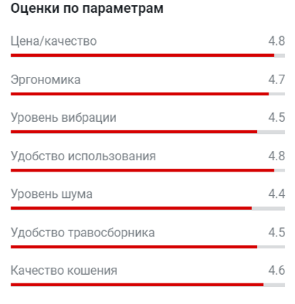 Мощности движка более чем достаточно для работы на участке 15 соток. Прекрасно справляется даже с запущенным газоном, не глохнет, и просадки в оборотах тоже нет. Превосходная маневренность. Травосборник большой и прошит очень качественно: сразу видно, что не пойдет по швам. Если всматриваться в мелкие детали, то видно, что нет больших зазоров, зазубрин и прочего, а детали четко подогнаны друг к другу. В общем и целом я рекомендую.