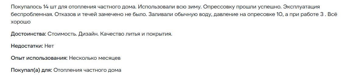 Оптимальное оребрение секций позволяет достичь высоких показателей теплоотдачи, уменьшают инертность прибора.