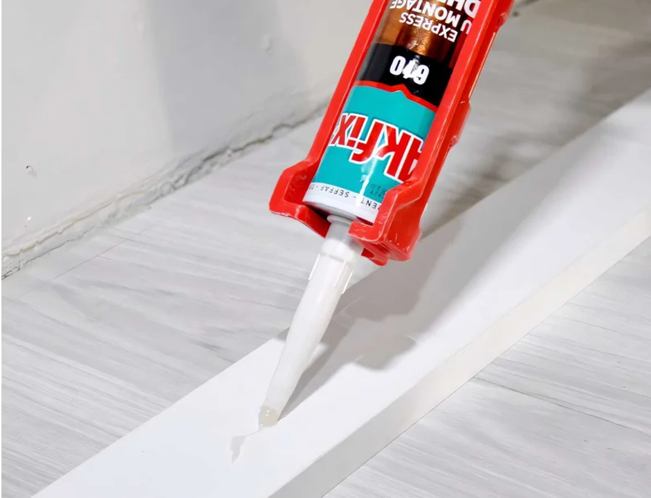 Этот монтажный клей изготовлен на основе растворителей. Он предназначен для работы с большинством современных строительных материалов, в том числе с влажной древесиной. Клей выравнивает небольшие дефекты поверхности, прочно фиксирует и сохраняет гибкость после высыхания. Благодаря синтетическому каучуку в составе может использоваться в помещениях с высоким уровнем влажности.