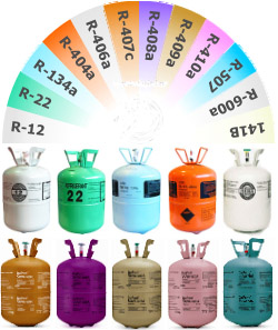 В бытовом и промышленном оборудовании используются хладагенты разных марок. Наиболее безопасными являются фторуглероды и гидрохлорфторуглероды (марки R134А, R407C и R410A).