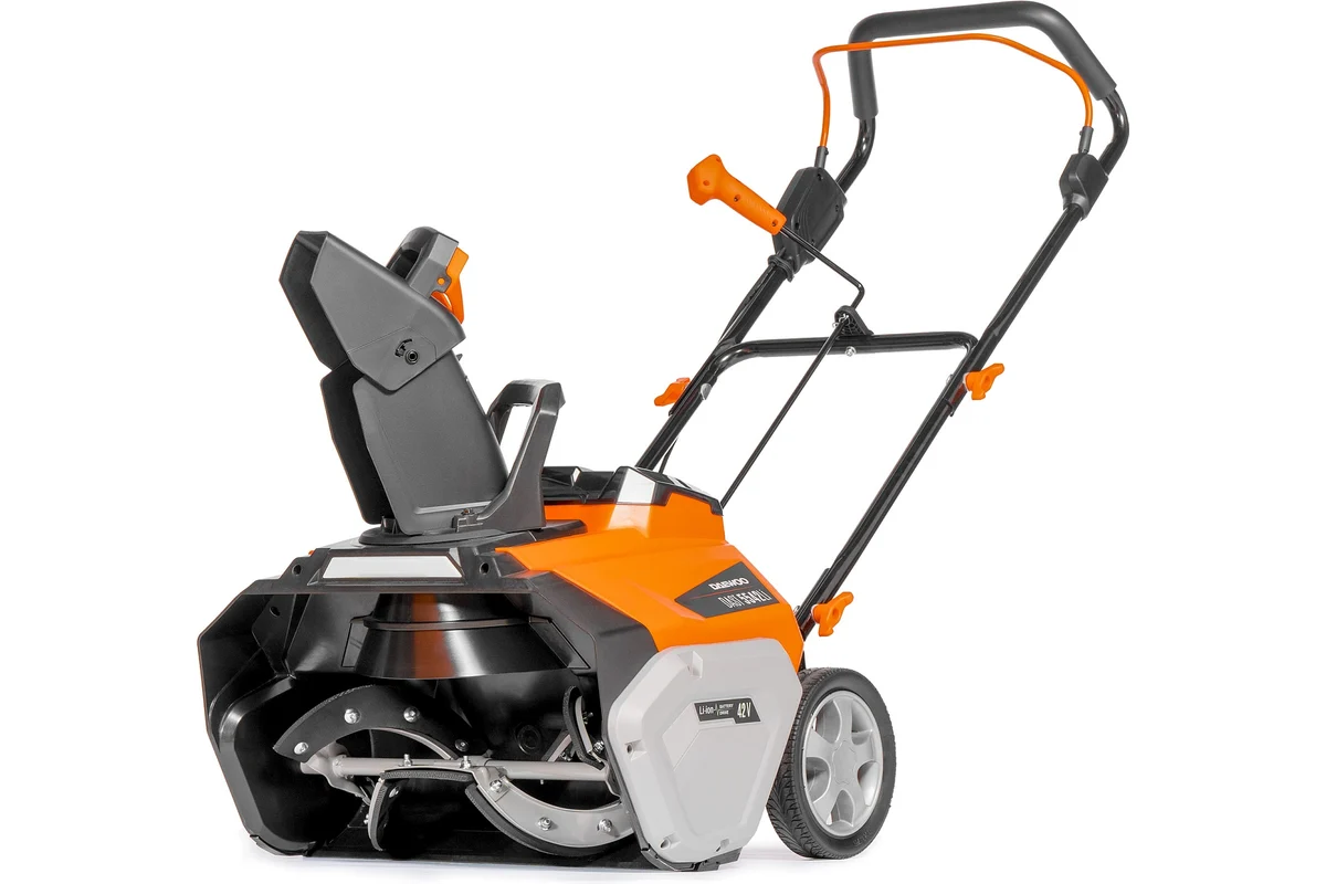 Модели с напряжением 24 – 36 В относятся к среднему классу. Они справляются со свежим снегом средней плотности на площади до 200 – 300 кв.м и подходят для частой уборки возле дома или гаража.