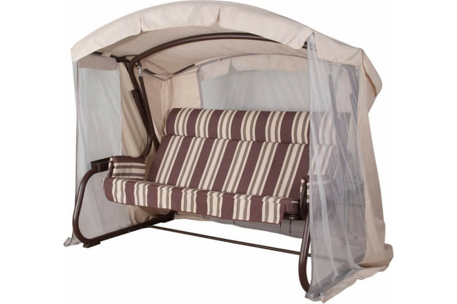 Отличные качели, все подошло, комплектация полная! Каркас серьезный, на ветру не качает, на земле стоят устойчиво! Основание для сидения – проволока, как на железных кроватях, при сидении очень удобно! Подлокотник очень кстати! Раскладывается, как кровать: очень удобно, можно сесть со всех сторон или лежать вдвоем! Вес выдерживает, втроем сидим свободно, если уплотниться, можно и четвертого посадить!