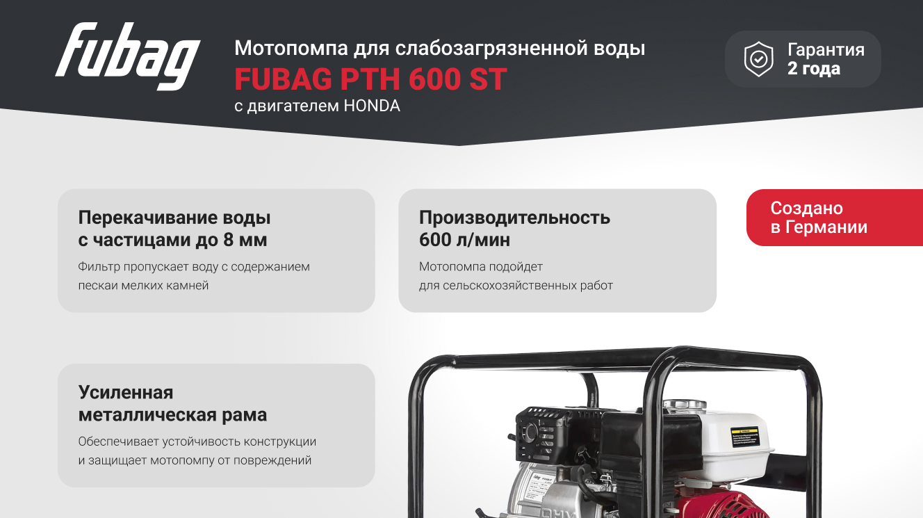 Мотопомпа для слабозагрязненной воды FUBAG PTH 600 ST 838216