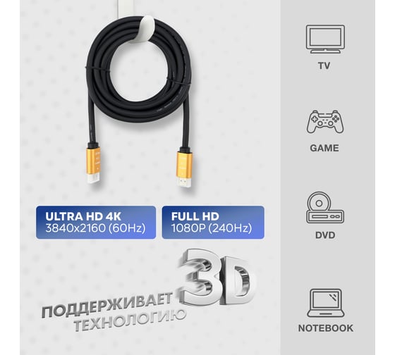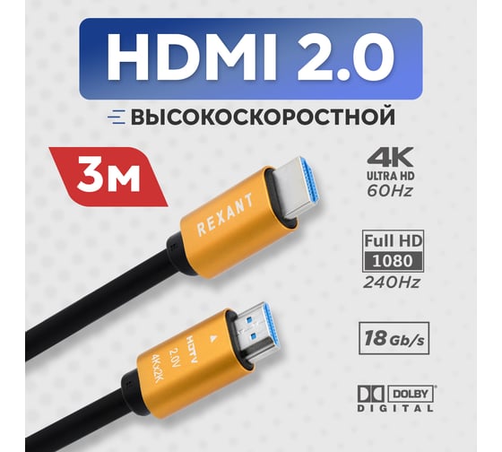 Кабель HDMI 1.4 REXANT Gold, 4К, 1 метр 17-6202