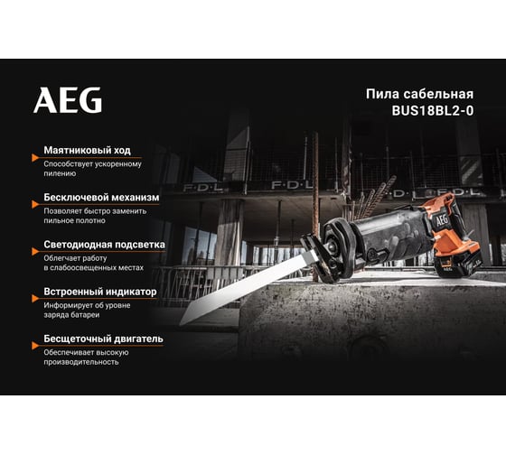 Сабельная бесщеточная пила BUS18SBL-0 AEG 4935479662