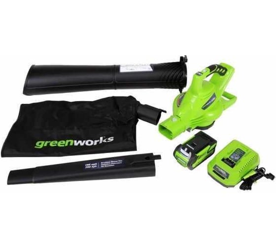 Воздуходув-садовый пылесос аккумуляторный Greenworks 40V, бесщеточный, c 1хАКБ 4Ач и ЗУ 2406907UB